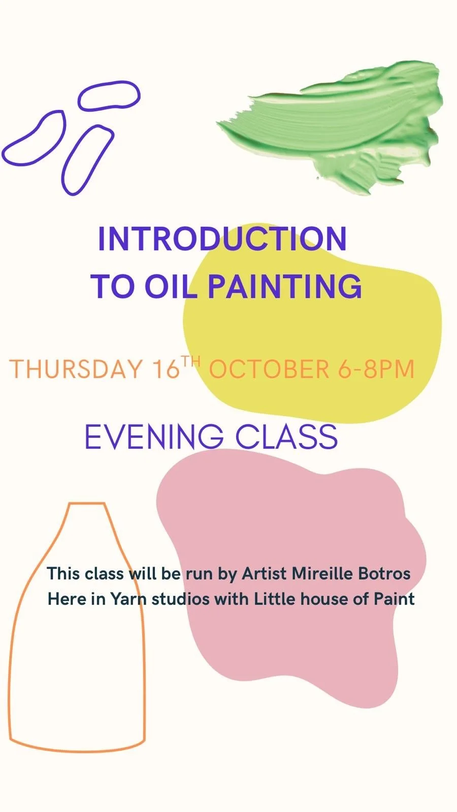 Suitable for complete beginners and experienced painters of other mediums (acrylic/water colour) who are curious about painting with oils. We’ll cover everything from materials to technique so you can paint with confidence. The session is taught in my studio at Yarn Studios in Shipley, BD17 7DW.