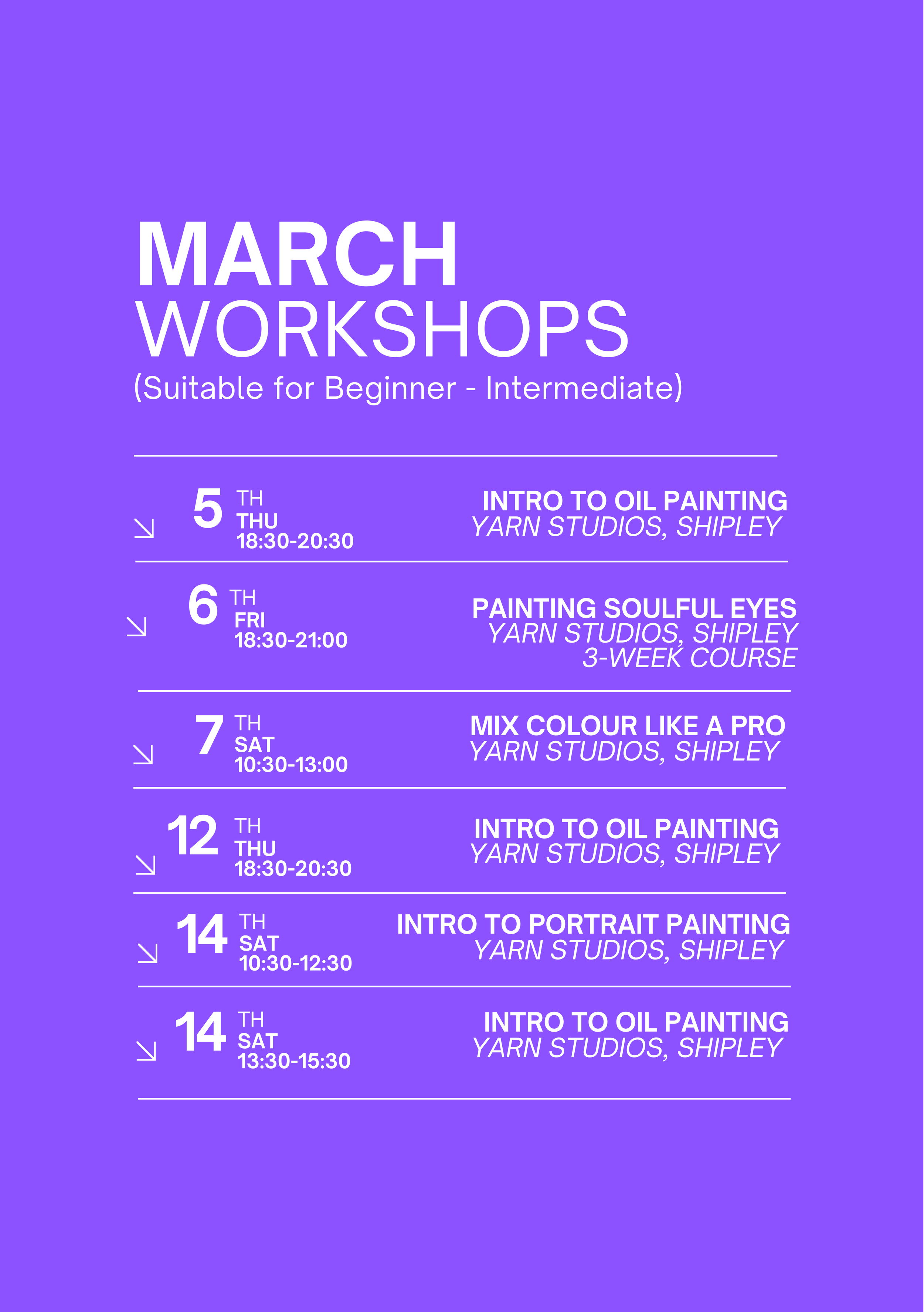 Suitable for complete beginners and experienced painters of other mediums (acrylic/water colour) who are curious about painting with oils. We’ll cover everything from materials to technique so you can paint with confidence.